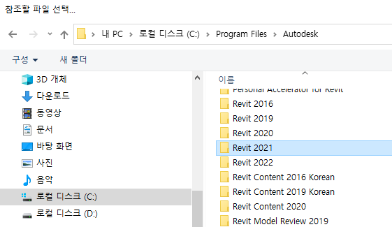 7. Revit 설치 폴더 선택 (C:\Program Files\Autodesk\Revit 버전)