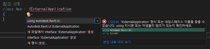 4. IExternalApplication 인터페이스 상속