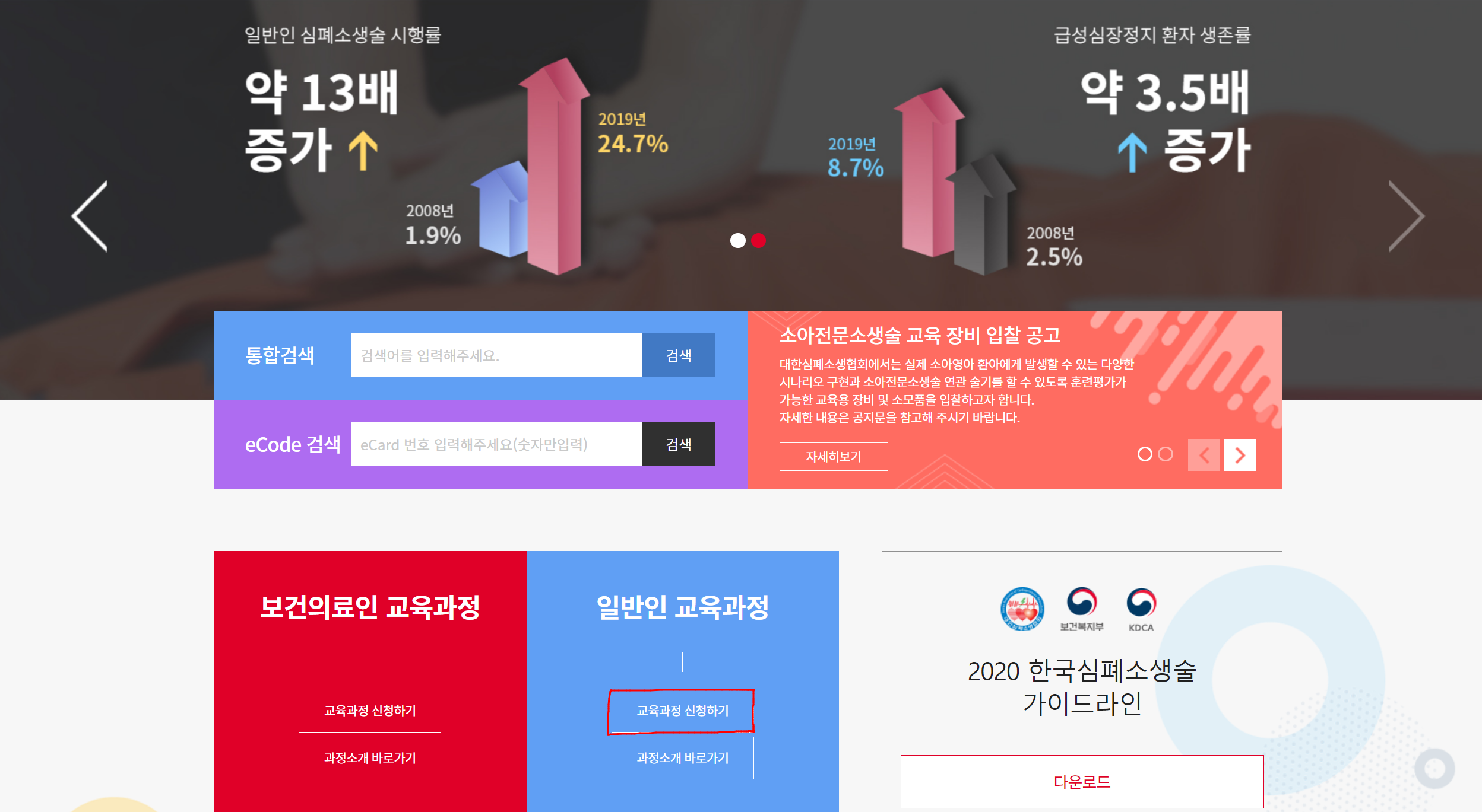 다른 강의에서는 잘못된 방법으로 알려주기도 해서, 대한심폐소생협회로 신청하는 것이 좋다고 한다.