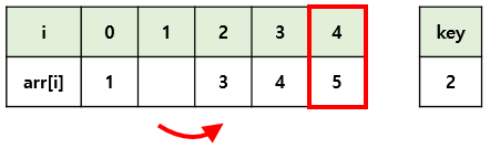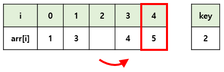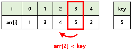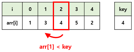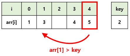 12) 하나 더 이전 값인 arr[2]와 key값을 비교한다.