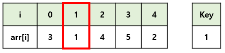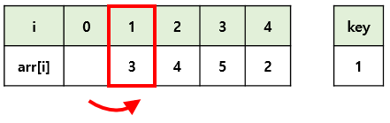 14) 하나 더 이전 값인 arr[1]과 key값을 비교한다.