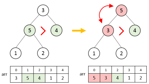 swap(arr[parent], arr[max]);