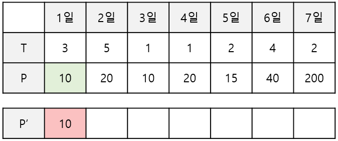 1) 1일까지 상담했을 때 최대 금액은 10이다.