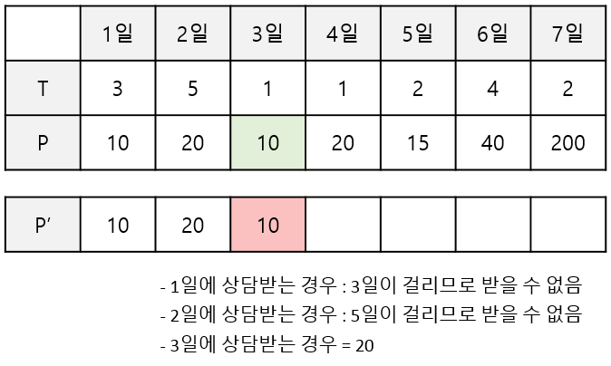 마찬가지로 2일에도 상담을 받으면 5일이 걸려 3일에 상담을 받을 수 없다.